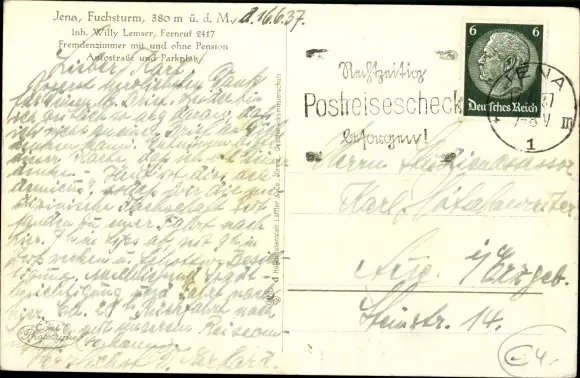gelaufen 1937, sehr guter Zustand
