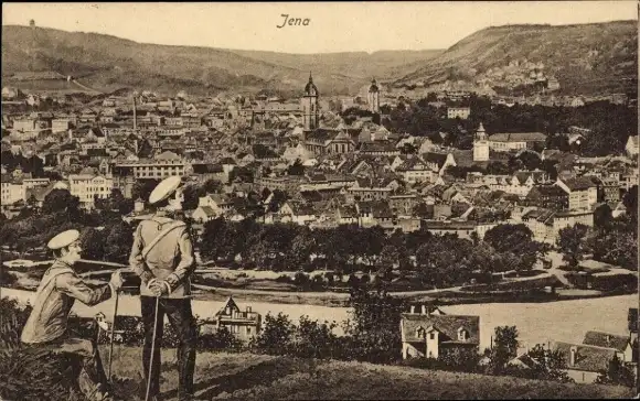 Ak Jena in Thüringen, Gesamtansicht, Zwei Männer in Uniform