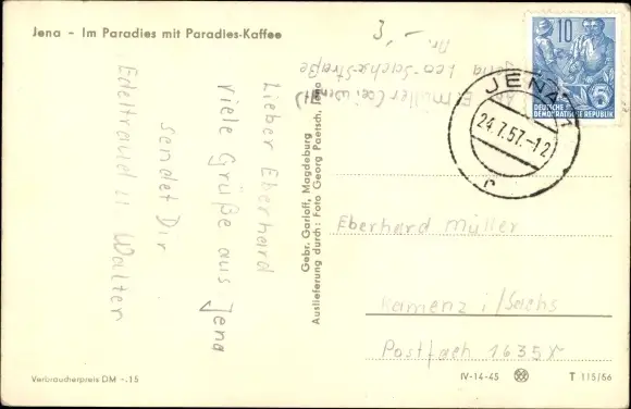 Ak Jena in Thüringen, Im Paradies mit Paradies-Kaffee