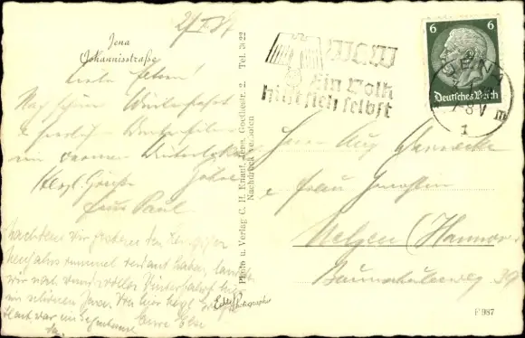 Zustand, siehe Scan, gelaufen, 1938 - ca 9 cm X 14 cm