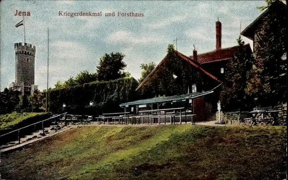 Ak Jena in Thüringen, Kriegerdenkmal, Forsthaus