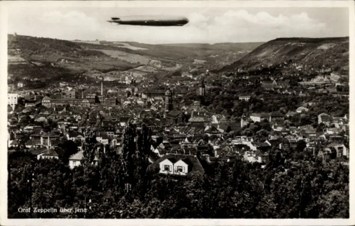 Ak Jena in Thüringen, Luftschiff Graf Zeppelin über der Stadt