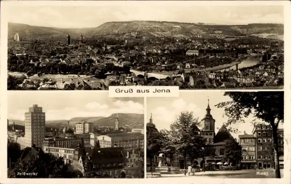Ak Jena in Thüringen, Panorama, Zeißwerke, Markt