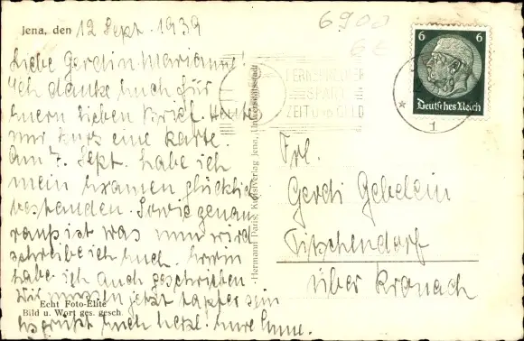 Zustand, siehe Scan, gelaufen, 1939 - ca 14 cm X 9 cm