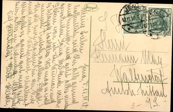 Zustand, siehe Scan, gelaufen, 1918 - ca 14 cm X 9 cm