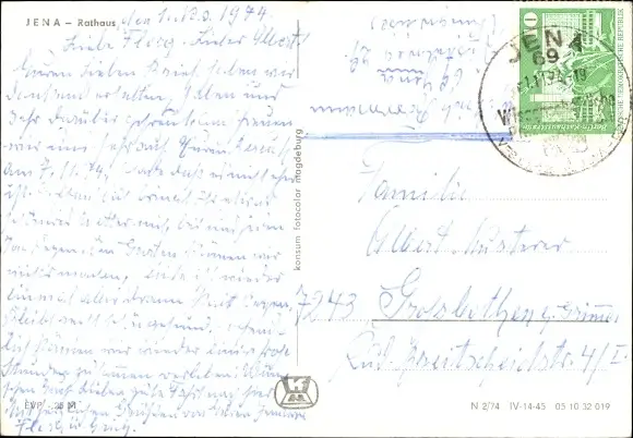 Zustand, siehe Scan, gelaufen, 1974 - ca 10 cm X 15 cm
