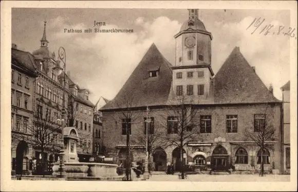 Ak Jena in Thüringen, Rathaus mit Bismarckbrunnen