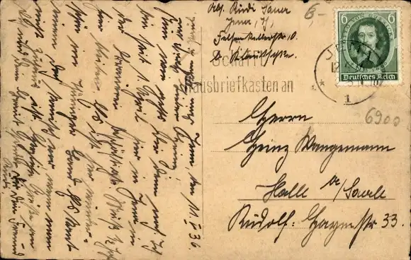 Zustand, siehe Scan, gelaufen, 1936 - ca 14 cm X 9 cm