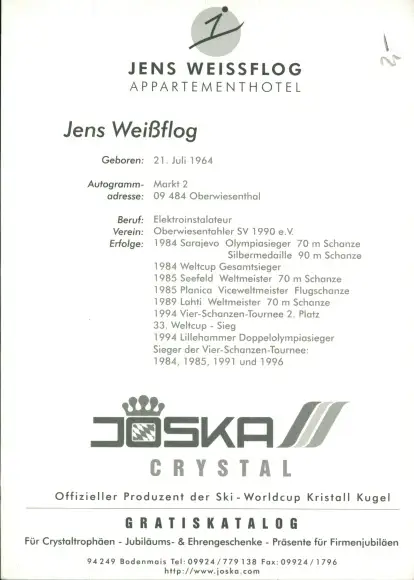 Ak Jens Weißflog, Skispringer, Portrait, Autogramm