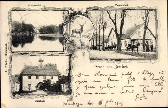 Ak Jersbek in Schleswig Holstein, Schlossteich, Fasanenhof, Torhaus