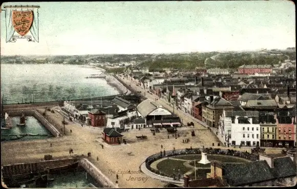 Ak Jersey Kanalinseln, The Esplanade, Wappen Arms of Jersey