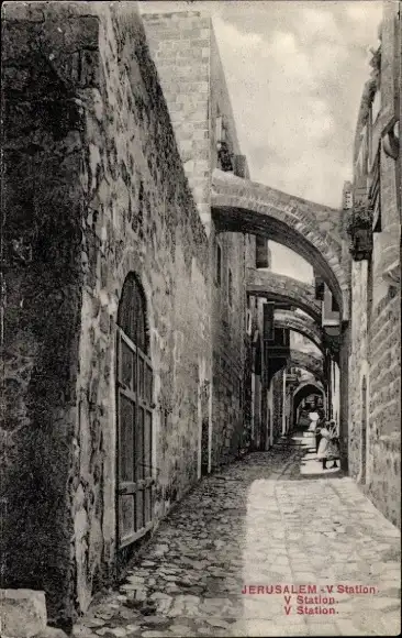 Ak Jerusalem Israel, Blick in die Gasse, Torbögen
