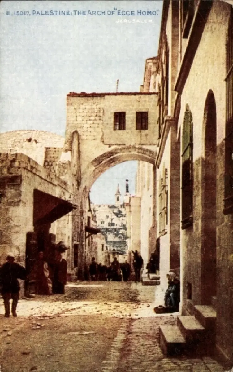 Ak Jerusalem Israel, Bogen ECCE HOMO, Stadtansicht, Straßenansicht, Menschen, Gebäude