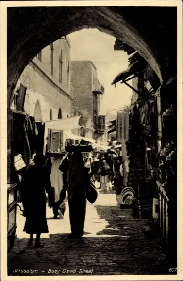 Ak Jerusalem Israel, David Street, Geschäfte, Straßenpartie