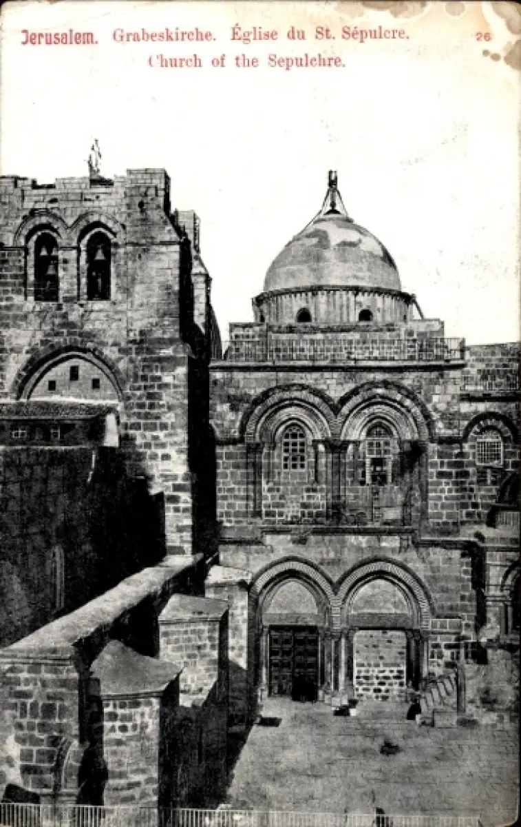 Ak Jerusalem Israel, Grabeskirche, Kirche des Heiligen Grabes, Schwarz-Weiß-Bild