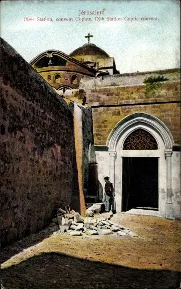 Ak Jerusalem Israel, IXme Station, couvent Cophte, Mann