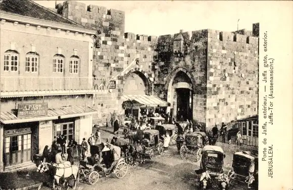 Ak Jerusalem Israel, Jaffa-Tor, außen, Jaffa Tor, Restaurator A. Fast