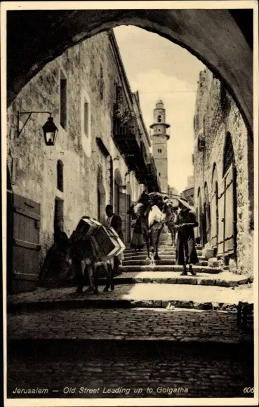 Ak Jerusalem Israel, Old Street leading up to Golgatha