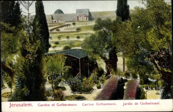 Ak Jerusalem Israel, Partie im Garten Gethsemane, Bäume