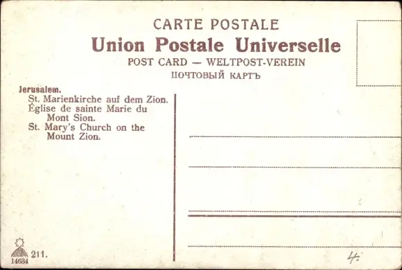Ak Jerusalem Israel, St. Marienkirche auf dem Zion