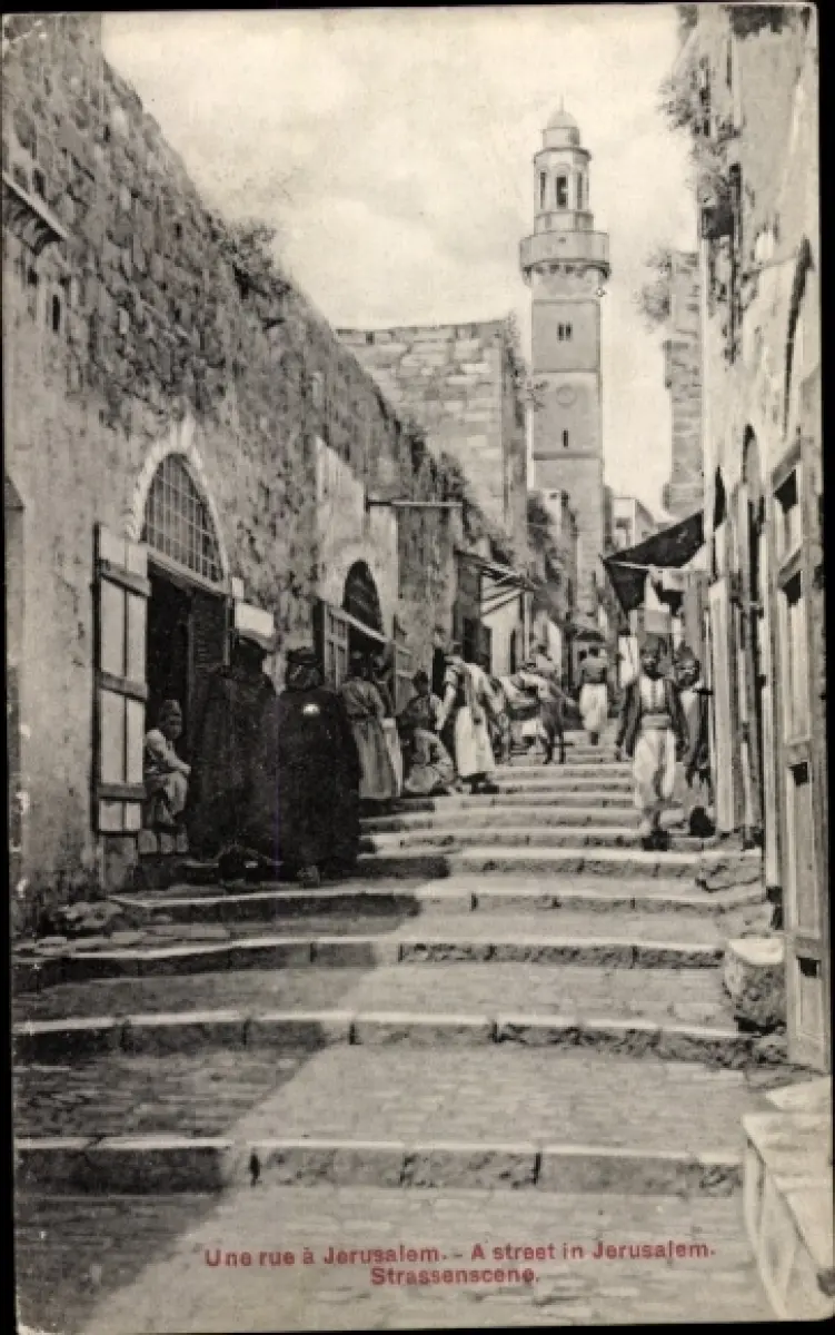 Ak Jerusalem Israel, Straßenszene in Menschen, Geschäfte, Atmosphäre