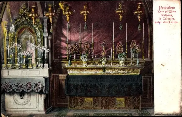 Ak Jerusalem Israel, Xme et XIme Stations, le Calvaire, Autel des Latins