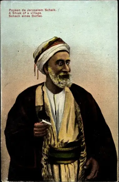Ak Jerusalem, Scheich eines Dorfes, Mann in traditioneller Kleidung