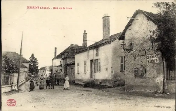 Ak Jessains Aube, Rue de la Gare, Chocolat Menier