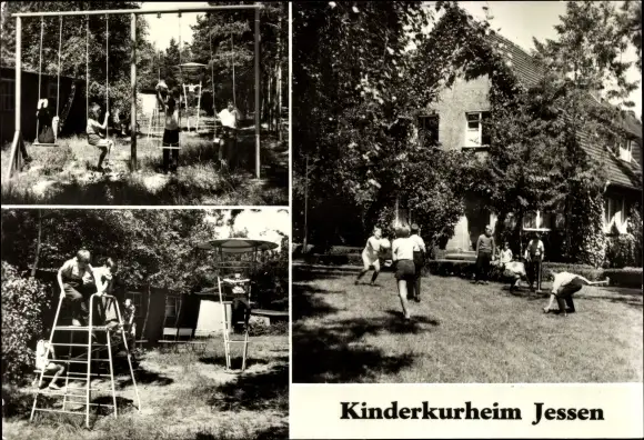 Ak Jessen an der Elster, Kinderkurheim, Garten, Schaukel