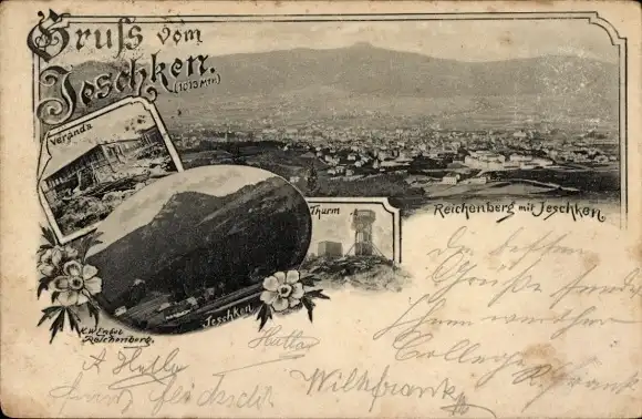 Ak Ještěd Jeschken Region Reichenberg, Gesamtansicht, Reichenberg, Turm, Veranda