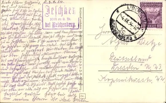 Zustand, siehe Scan, gelaufen, 1934 - ca 9 cm X 14 cm