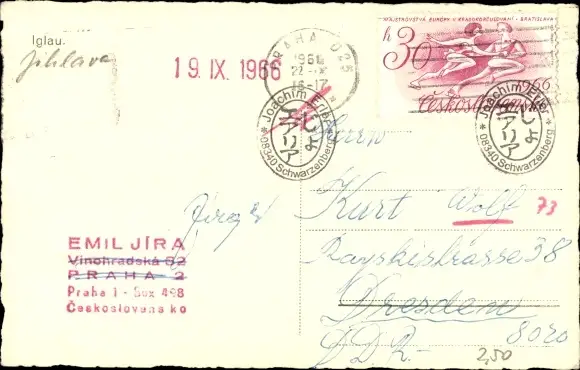 Zustand, siehe Scan, gelaufen, 1966 - ca 14 cm X 9 cm