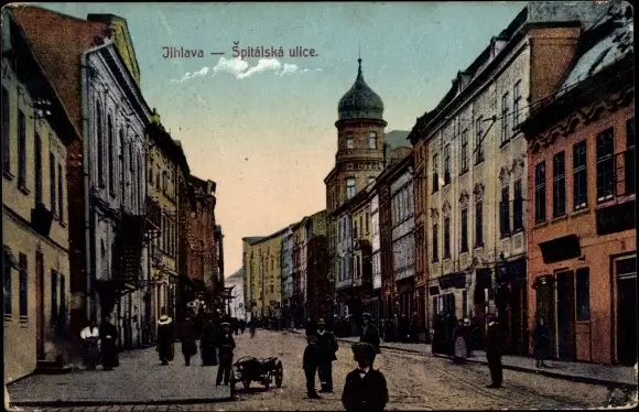 Ak Jihlava Iglau Region Hochland, Spitalska ulice, Straßenpartie