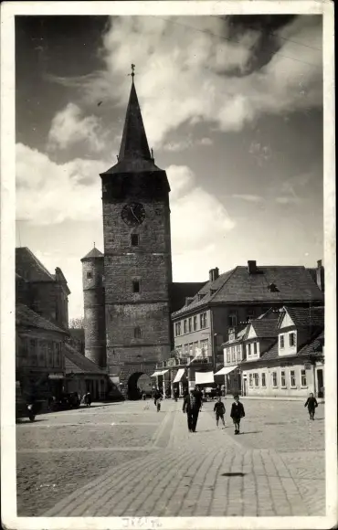 Ak Jičín Jitschin Reg. Königgrätz, Namesti, Marktplatz, Turmuhr