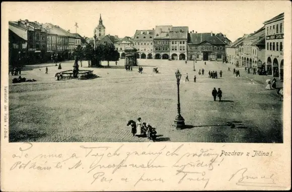 Ak Jičín Jitschin Region Königgrätz, Teilansicht, Platz