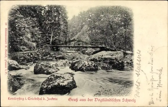 Ak Jocketa Pöhl Vogtland, Loreleysteg im Triebthal, Vogtländische Schweiz