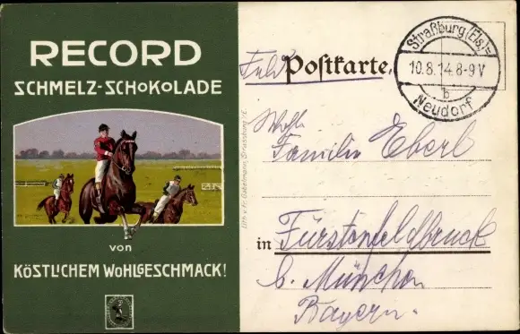 Ak Jockeys zu Pferde, Werbung Record Schmelz-Schokolade