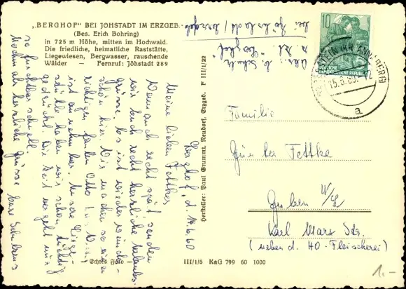 Zustand, siehe Scan, gelaufen, 1960- Bes. Erich Bohring - ca 15 cm X 11 cm