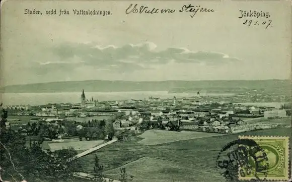 Ak Jönköping Schweden, Staden, ves fran Vattenledningen