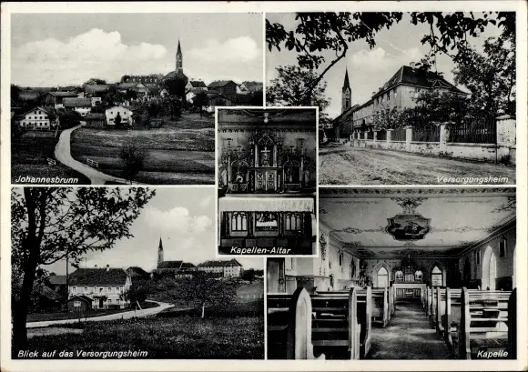 Ak Johannesbrunn Schalkham in Niederbayern, Versorgungsheim, Kapelle, Altar, Ortsansicht