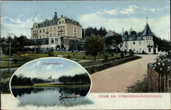 Ak Johannisbad Schmeckwitz Räckelwitz Oberlausitz, Handricksteich
