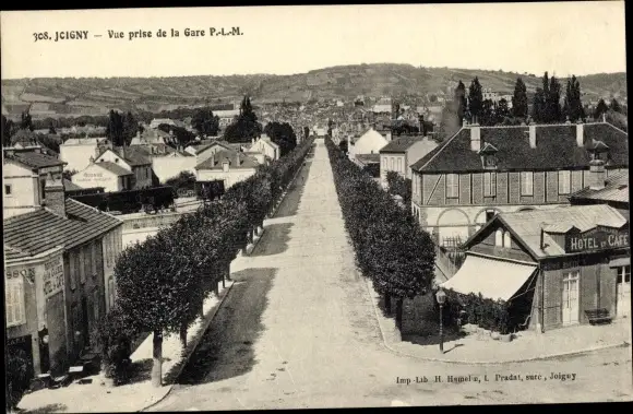 Ak Joigny sur Meuse Yonne, Vue prise de la Gare PLM, Hotel
