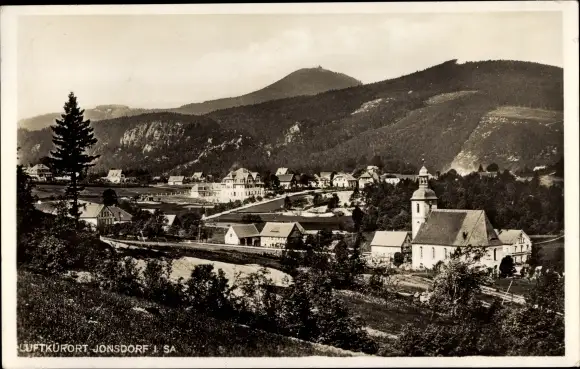Ak Jonsdorf Zittauer Gebirge, Ortschaft mit Landschaft