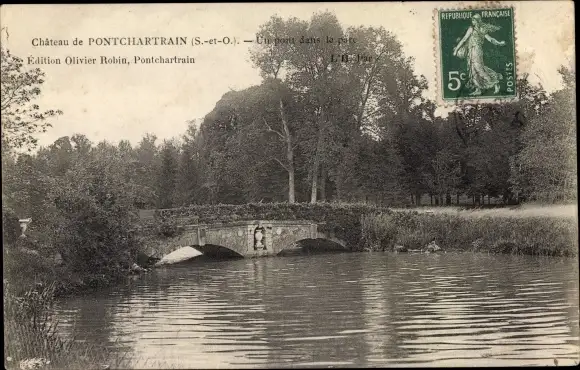 Ak Jouars-Pontchartrain Yvelines, Un Pont dans le Parc du Chateau
