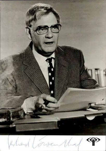 Ak Journalist und Moderator Gerhard Löwenthal, Portrait, Autogramm, Zigarre