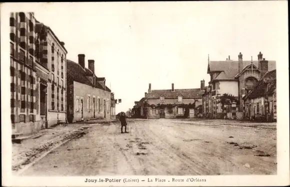 Ak Jouy le Potier Loiret, La Place, Route d'Orleans