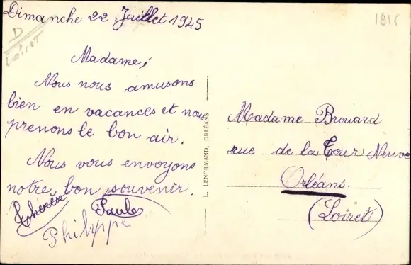 ungelaufen, datiert 1945, Rückseite beschrieben, sehr guter Zustand
