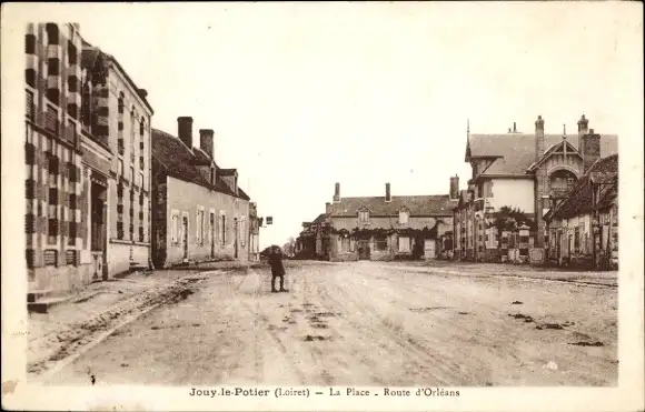 Ak Jouy le Potier Loiret, La Place, Route d'Orleans