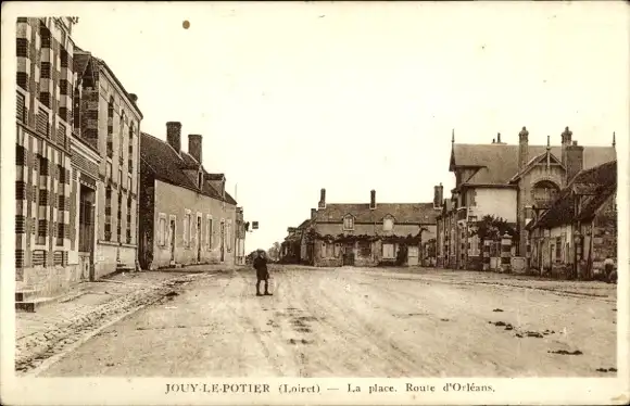 Ak Jouy le Potier Loiret, La place, Route d'Orleans