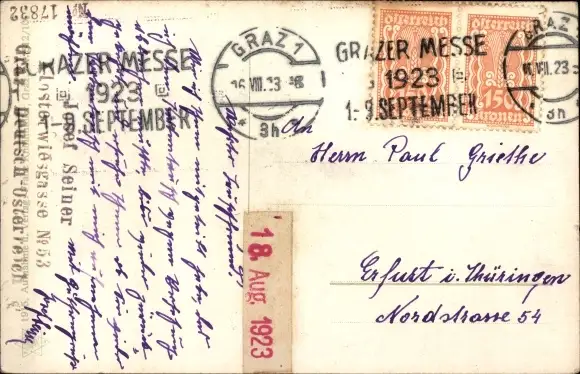 Zustand, siehe Scan, gelaufen, 1923 - ca 14 cm X 9 cm